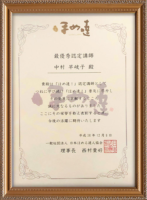 - (一社)日本ほめる達人協会 特別認定講師(2018年最優秀認定講師)